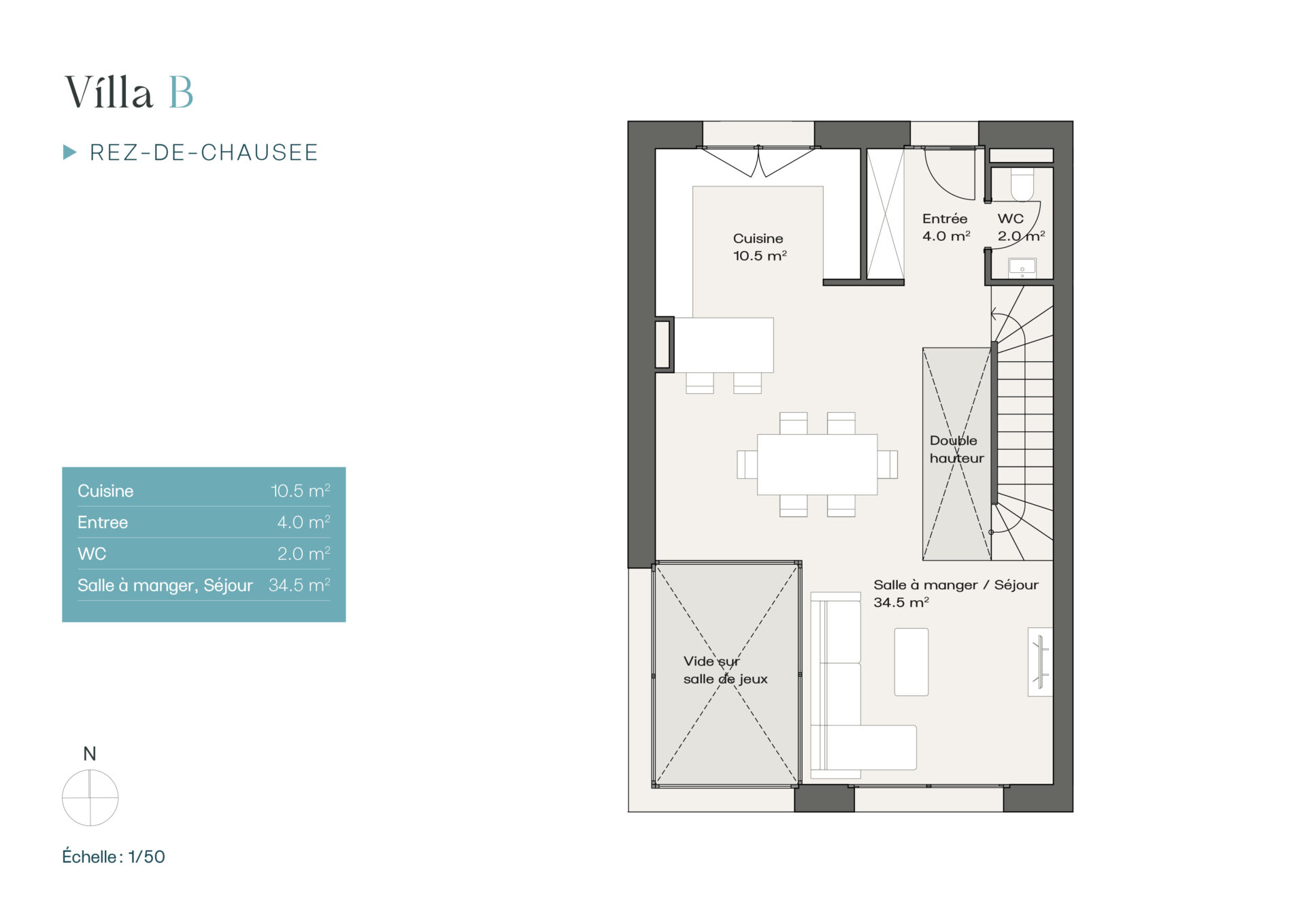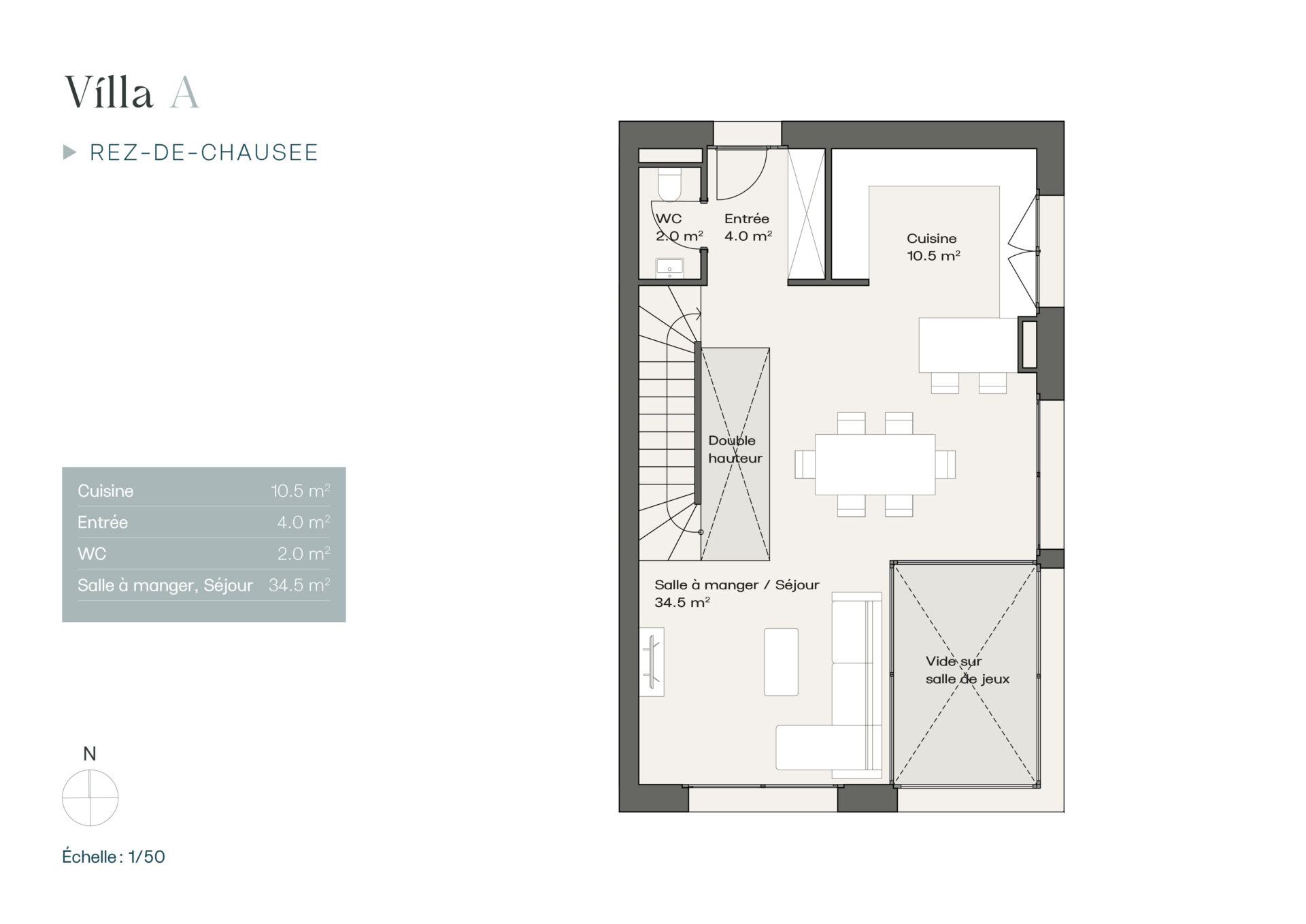 - 1 salle de jeux alimentée en lumière naturelle par le patio avec double hauteur sous plafond